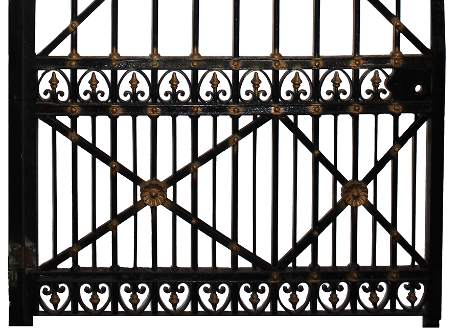 Note: In antique condition with some missing decorative elements and decorations, some bending. Needs professional handling and installation. Please view all images and video.