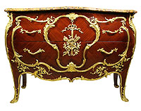 A Fine and Large French late 19th Century Louis XVI Style mahogany, Kingwood Bandings and Fruitwood Marquetry Armorial Commode with Sycamore Marquertry and Gilt Bronze Mounts, after a Model of The Commode Commandée Pour La Chambre de Louis XVI à Versailles (d. 1774) by Jean-Henri Riesener (French, 1734-1806). Attributed to the French 19th century bronzier Léon Kahn who is known for his high quality casting and chasing of French furniture. Kahn's furniture was mainly created from examples of French Period works by Master ébénistes and "ébénistes du roi" like Jean-Henri Riesener (1734-1806) and Guillaume Benneman (1750-1811). Circa: Paris, 1890-1900. Ref.: A2397 |
