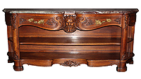 A Superb Quality French 19th Century Louis XVI Style Figural Finely Carved Walnut Buffet Server with a Variegated Rouge Royal Marble Top, the apron centered with a relief carved figure of an allegorical Neptune flanked by a pair of drawers with carved scrolls and acanthus above a full-length wooden shelf. The corners with carvings of seashells and lined-acanthus. Circa: Paris, 1890. Ref.: A1999 |