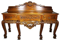 A Large English 19th/20th Century Chippendale Style Carved Light-Walnut Three-Drawer Console - Server Buffet. The rectangular shaped body surmounted with a carved back molding, the floral carved three-drawer apron, the side drawers with a symmetrical pattern design above a shell and acanthus carved draped edge, raised on six square legs. The drawers with gilt-bronze wreath shaped hardware. Circa: 1900. Ref.: A2311 - Lot 2644 |