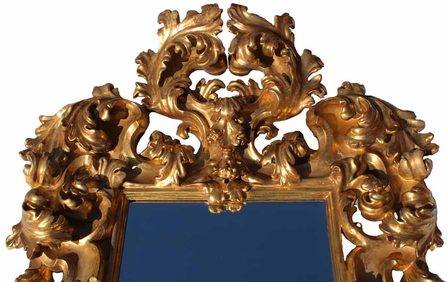 A Palatial and Museum Quality Italian 19th Century Florentine Rococo Gilt Wood Carved Mirror Frame. The ornately carved frame with scrolls and acanthus, all gilt is original. Circa: Florence, 1870-1880.