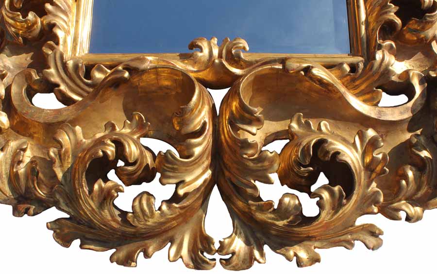 A Palatial and Museum Quality Italian 19th Century Florentine Rococo Gilt Wood Carved Mirror Frame. The ornately carved frame with scrolls and acanthus, all gilt is original. Circa: Florence, 1870-1880.