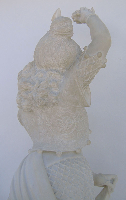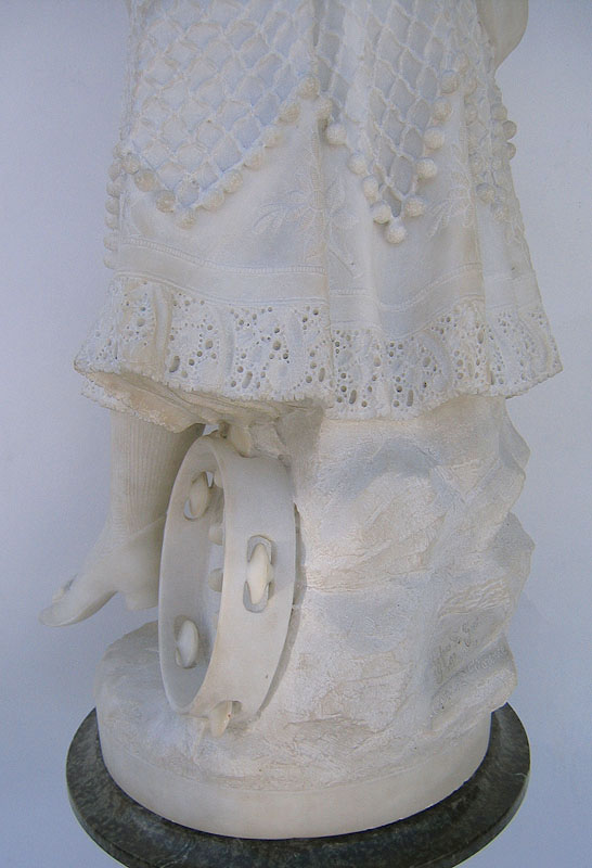 These are additional images of The Very Finely Carved Italian 19th Century Carrara Marble Figure of "Carmen" by Professore Fortunato Galli, Florence, depicting the beautiful Gypsy Seductress in George Bizet's beloved Opera "Carmen", raised on an ornately carved Verde d'Alps marble pedestal with grapes and vine leaves. Signed: Prof. F. Galli - Galerie P. Barzanti/Florence. Circa: 1880