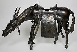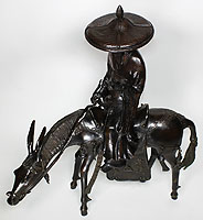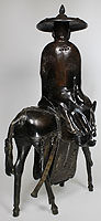 A Fine and Large Japanese Meiji Period 19th/20th Century Bronze Figural Incense Burner Censer depicting an old man riding a donkey - Mule. Signed in Japanese. In a brown patina. Circa: 1900.
