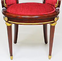 Note: These dining chairs are being sold as frames ready for upholstery, only two of them have been upholstered as a way to show what the frames will look like after they are upholstered. The frames have been recently been refinished and restored and the gilt-bronze mounts cleaned.