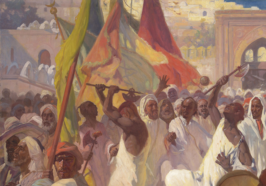 Gordon B. Coutts (Scottish/American, 1868-1937) A Very Fine and Large Oil on Canvas "Ashura Rituals, Tangier" (Arabic: عاشوراء ʻĀshūrā’ - Urdu: عاشورا - Persian: عاشورا - Turkish: Aşure Günü). Signed and inscribed: 'Gordon Coutts/TANGIER (lower right). Circa: 1920