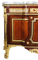 Note: This commode is designed after Riesener' s Model of The Commode du Concordat at Château de Fontainebleau , but without marquetry. It is commonly referred to as a Fontainebleau style commode .