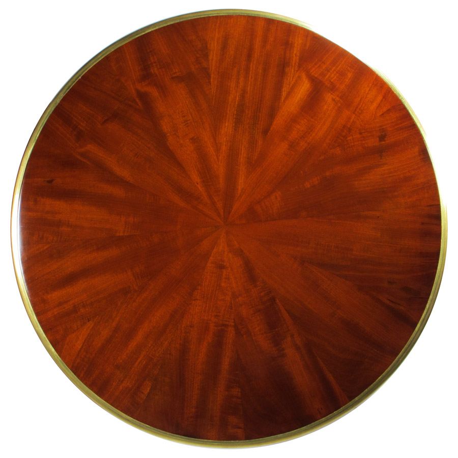 A Very Fine French 19th-20th Century Louis XVI Style Mahogany and Gilt-Bronze Mounted Circular Side Table (Gueridon) by Maison Jansen, Paris. The tapered fluted legs fitted with classical ormolu capitols descending into a sunburst shaped stretcher and finishing with tapered turned feet with gilt bronze casters. Stamped twice "JANSEN" underneath, Paris, circa 1900.