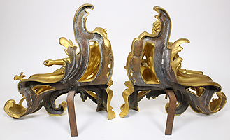 The bronziers Bouhon et Cie. Bouhon Frers. specialized in bronze-decorated fire-places and fire-fittings. These large and fine chenets are supreme examples of their output. The firm participated in the 1878 and 1900 Paris Expositions Universelles.