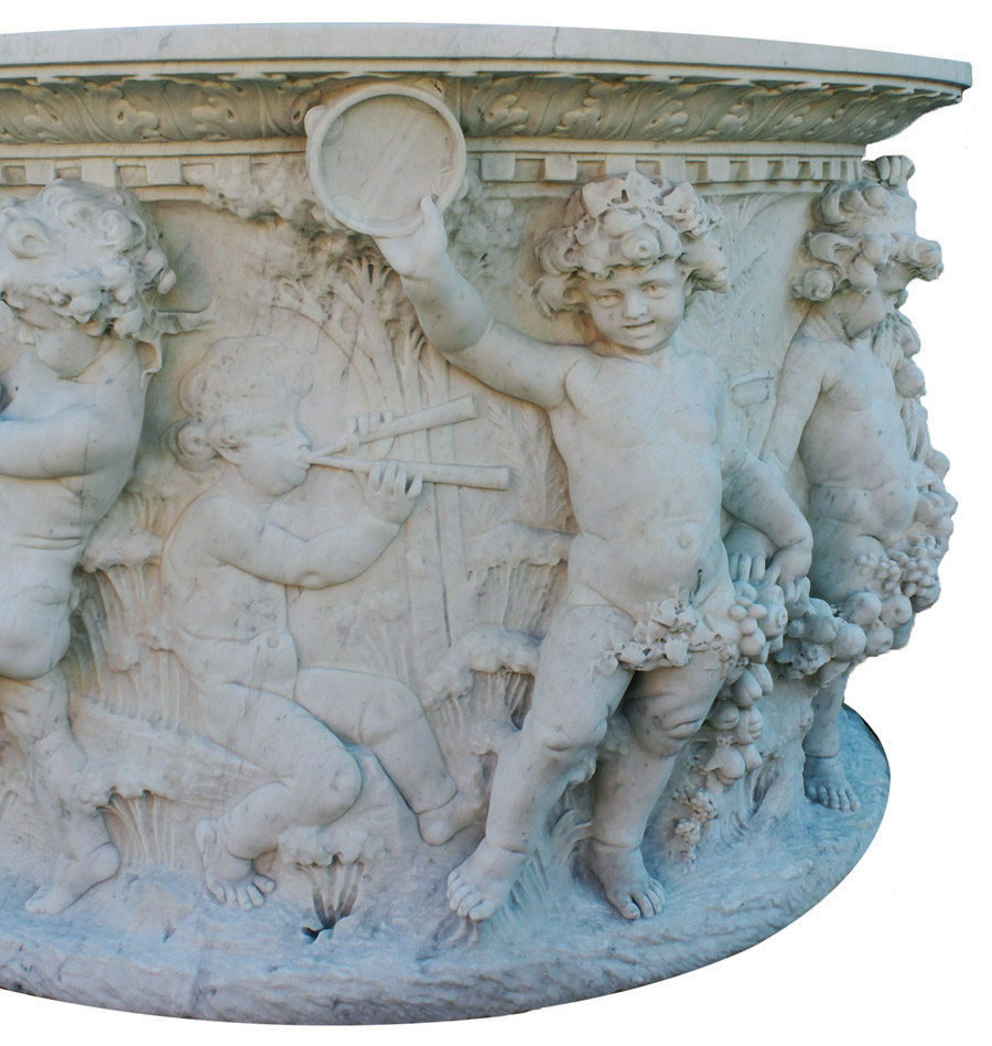 Yet another similar wellhead carved with frolicking putti with musical instruments and a dentil molded rim is located at Cranbrook House, Bloomfield Hills, Michigan, and is illustrated in B. Israel, Antique Garden Ornament: Two Centuries of American Taste , 1999, p. 207.