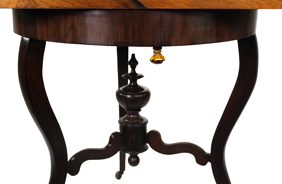 A Very Fine and Rare French Louis Philippe Carom Billiard - Draughts - Card - International Checkers Game Table by "THIS". The elegant rosewood table features a removable square top with a checkered inlaid design, suitable for playing international checkers. The top is adorned with a brass inlaid trim for added sophistication. Inside, the carom billiard compartment is lined with green felt and includes three balls, a red and two white, as well as two shooter-billiard poles with trigger. The table is supported by a circular tri-legged rosewood base on casters, adorned with amber molded glass knobs for adjusting the top's tilt. Inside, the interior trim proudly displays the cabinet maker's 'bubble level' plaque, which reads "'THIS' Jeux de Jardin - Jeux de Salon - Breveté S.G.D.G. - Fournisseur de S M L'imperatrice - BOUL_t Du Temple 43 Paris" showcasing its origin and craftsmanship. Circa: Paris, 1860.