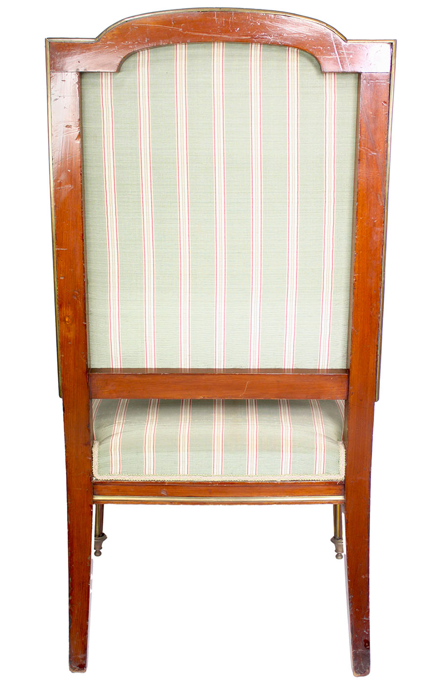 Pair of French 19th-20th Century Louis XVI Style Mahogany and Gilt-Metal Mounted High-Back Armchairs. Circa: Paris, 1890-1900.