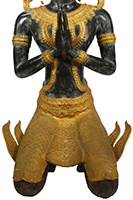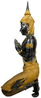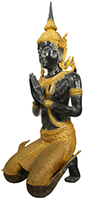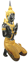 Thephanom also refers to an angel or deity who is a temple protector and guardian. They are often represented kneeling on both knees with hands at the wai position, praying or offering respect. The Thepanom first came to earth when Buddha reached enlightenment. They became Buddha's protector, then guardian of religious temples and artifacts such as scrolls. The definition of Thepanom was arrived at by reading descriptions of Thepanom statues and communicating with Thai people.