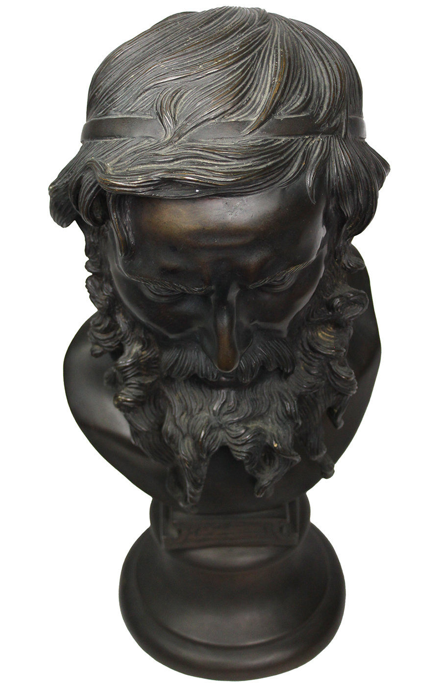 A Fine Italian 19th-20th Century Bronze Bust Figure of Il Filosofo (The Philosopher), cast from a model by Vincenzo Gemito, depicting an elder bearded man with a straight gaze, fitted on a circular stand. Signed GEMITO and some markings. Circa: Naples, 1900.