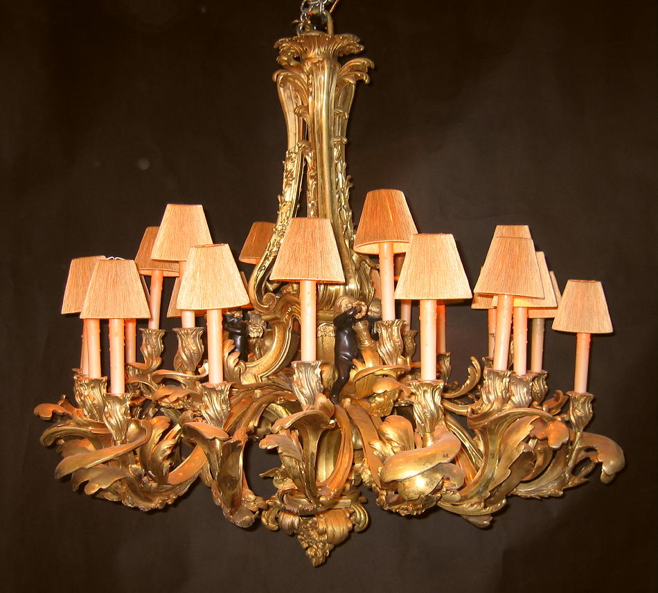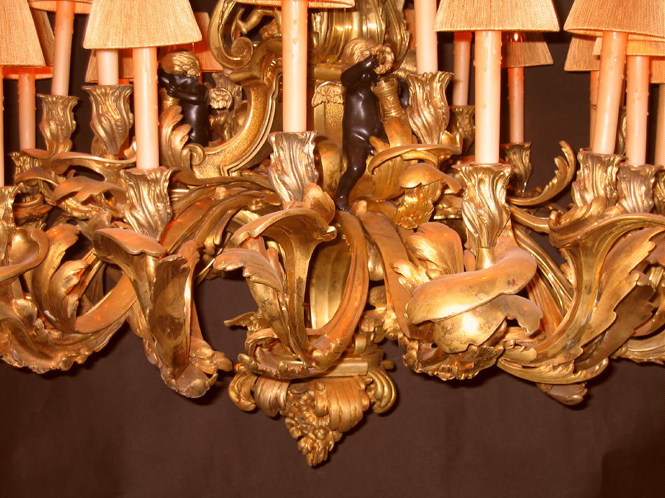 Gilt-Bronze Figural Twenty-Four Light Chandeliers, After a Model by Jacques Caffiéri.