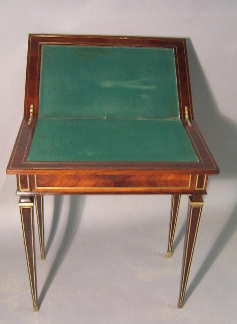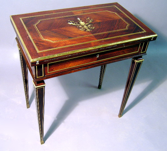 A Fine French 19th Century Louis XVI Style Mahogany "Boulle" Style Side/Game Table. Circa: 1880.