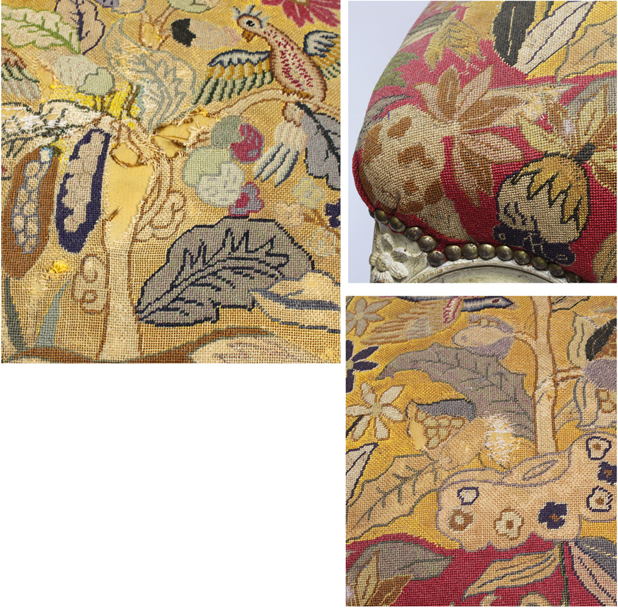 A Fine Set of Four French 19th Century Louis XV Style White-Lacquer-Finished and Needlepoint Tapestry Side Chairs, the front legs with coasters. Circa: Paris, 1890.
